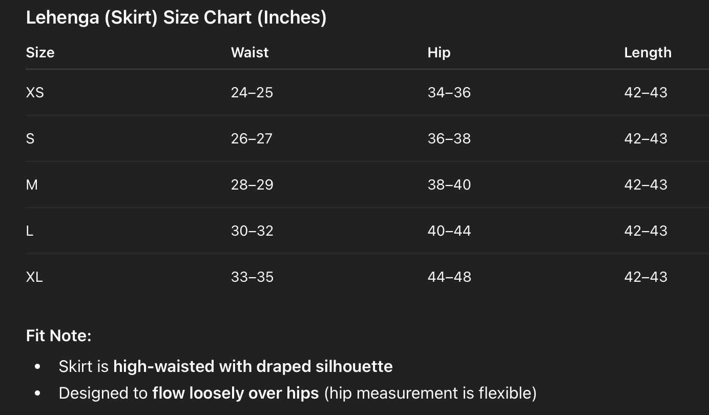 • Skirt: Pre-draped lehenga with saree-inspired drape